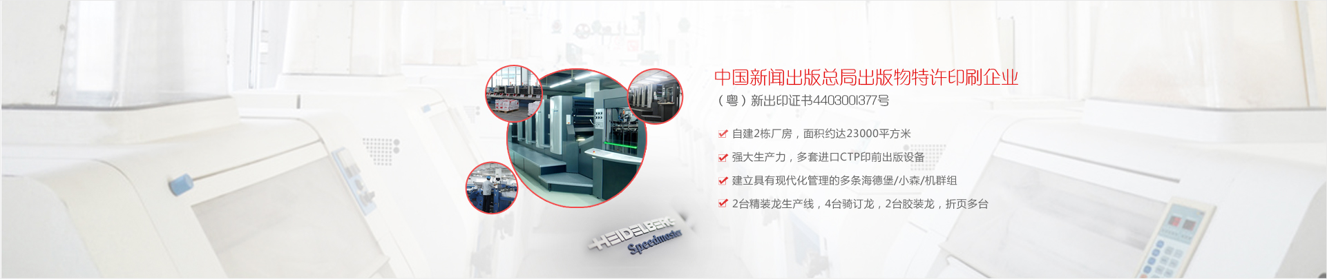 公司實(shí)力雄厚,設(shè)備先進(jìn)。 聚集了許多高等院校的尖端高級印刷專業(yè)人才,擁有國際頂尖的、全球最大的成套印刷設(shè)備— - 德國海德堡-對開四色、五色、雙色、單色、四開四色機(jī)等的主體印刷設(shè)備, 擁有高水準(zhǔn)后道加工系統(tǒng)—— 全電腦控制的斯塔爾折頁機(jī)、 STAHL 自動折頁機(jī)、 全自動鎖線機(jī)、 全自動騎馬訂聯(lián)動機(jī)、馬天尼膠裝龍、 程控切紙機(jī)、環(huán)保型過膠機(jī)、啤機(jī)等 精良裝備,整套印前印后設(shè)備。